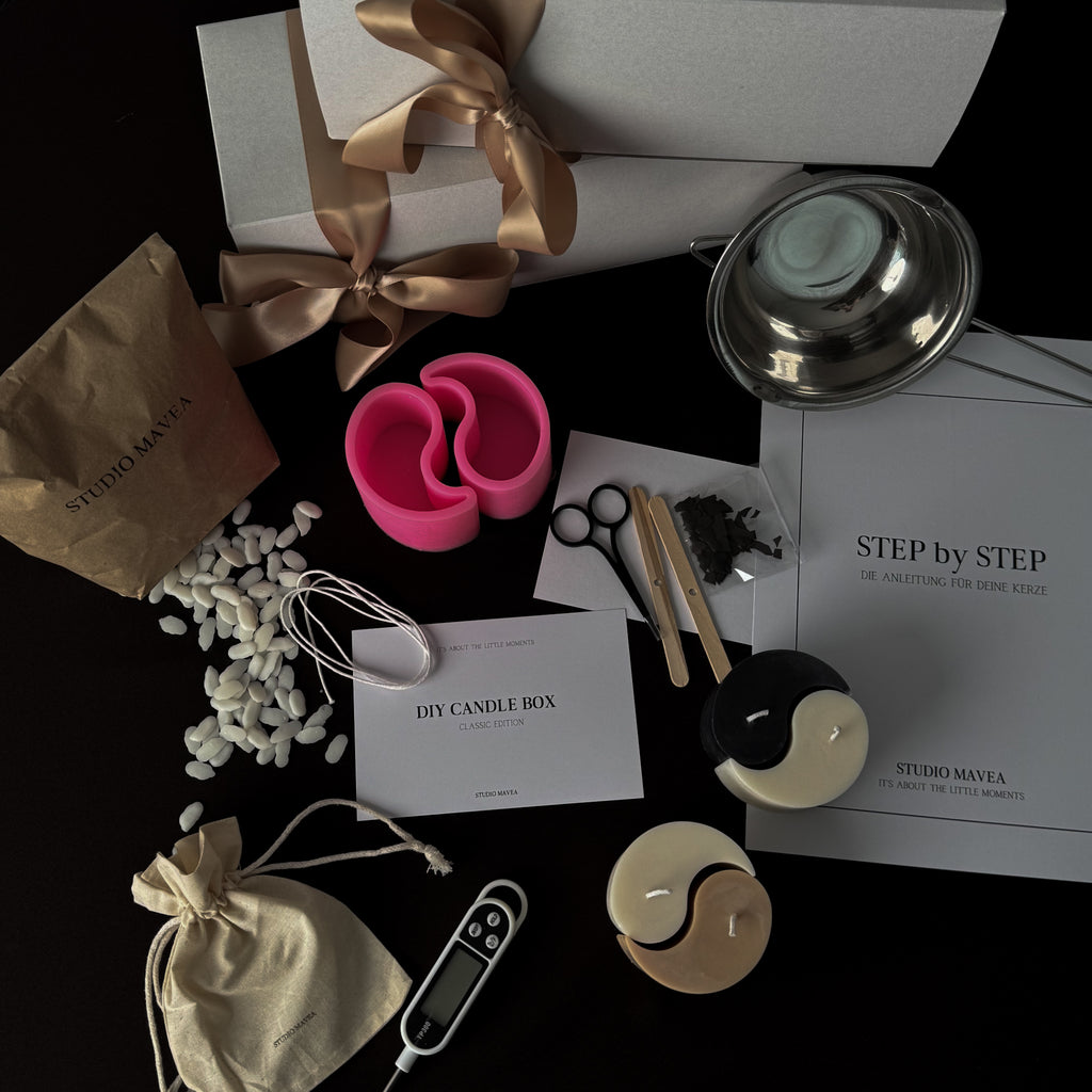Jahrelang habe ich diverse Rohstoffe und Materialien testen dürfen - in dieser Box befinden sich die Besten - genau die, die auch bei STUDIO MAVEA für die liebevolle Herstellung von Kerzen verwendet werden.