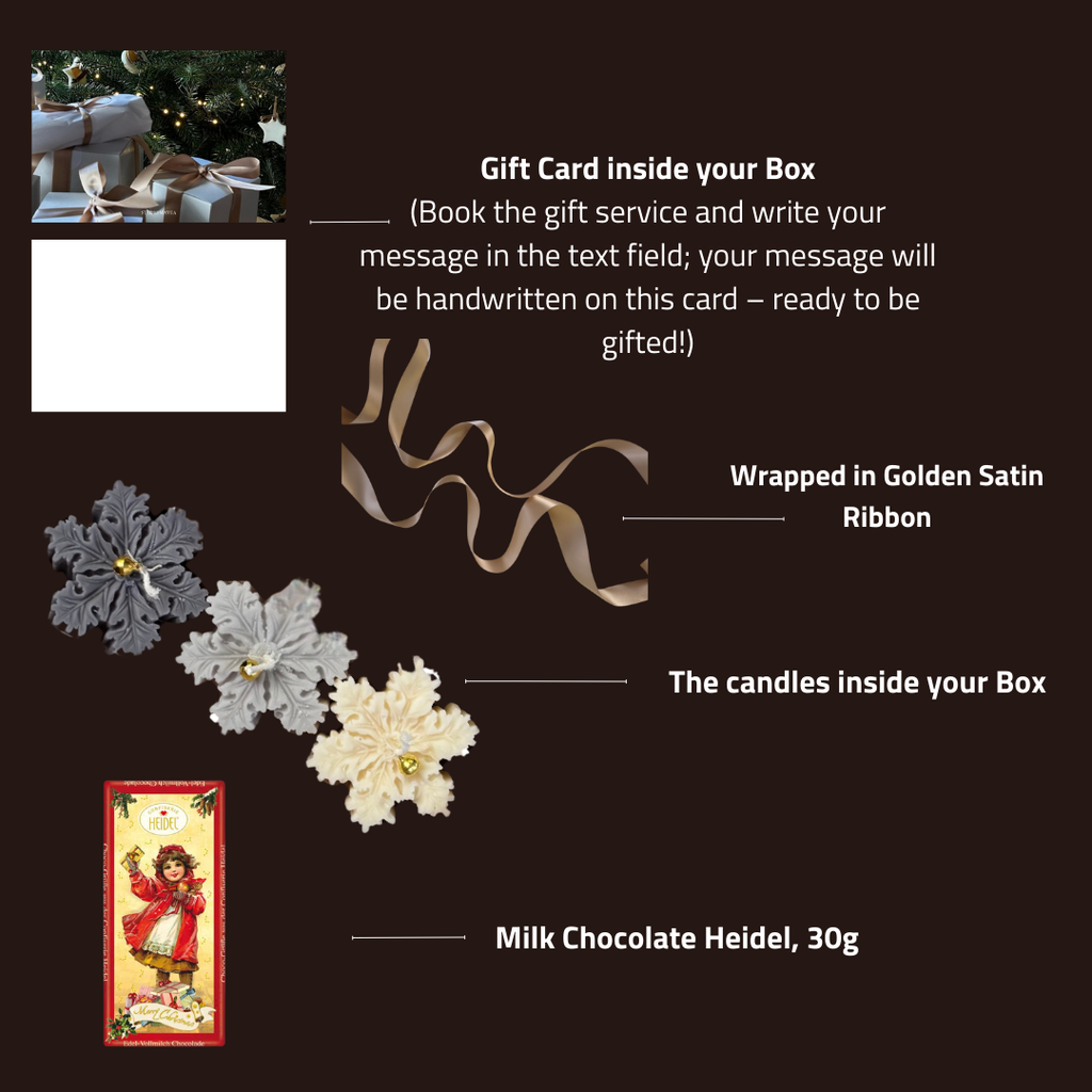 Deine Kerze kommt verpackt in einer klassisch, braunen, hochwertigen Box mit süßer Schleife aus Satin.