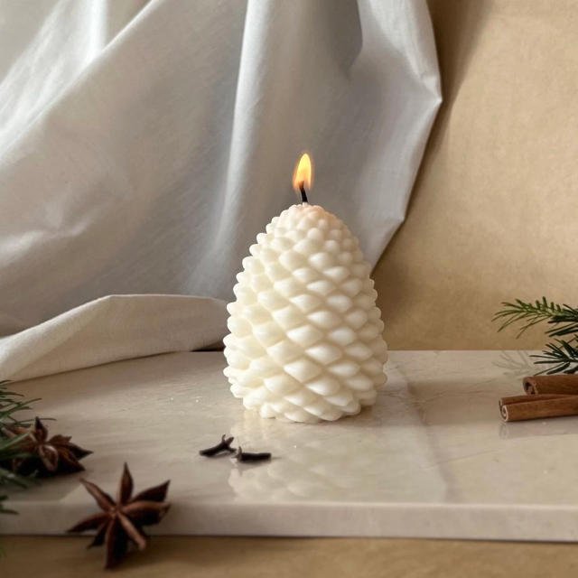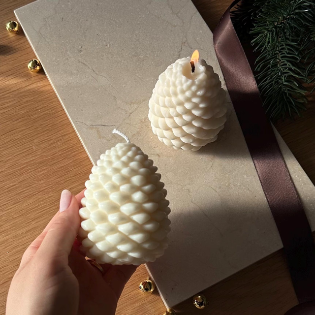 Wie frisch aus einem Winterwald – die CHRISTMAS PINE-Kerze erinnert an den Duft kalter Luft, den Glanz von Raureif und das leise Knistern des Winters. Ihre strukturierte Oberfläche spiegelt die feine Schönheit einer Tannenzapfenform wider und bringt natürliche Eleganz in jedes Zuhause.