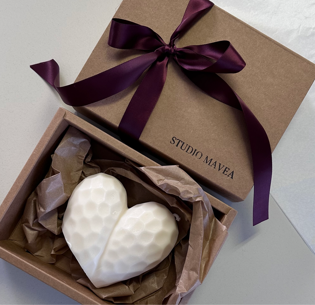 You'll find it here! The LOVE candle is a beautiful heart, crafted with high quality, and fits perfectly into any home—and it's now available in a ready-made gift box with a sweet satin bow.