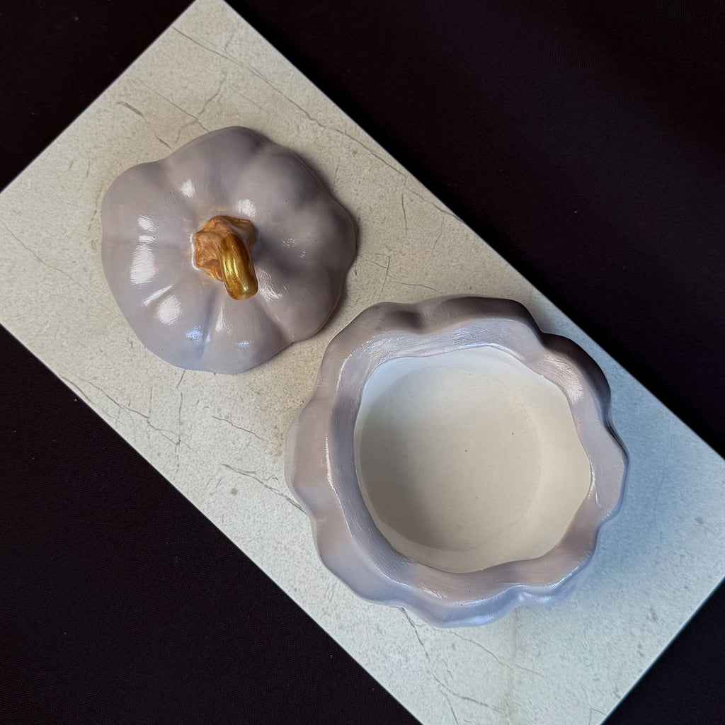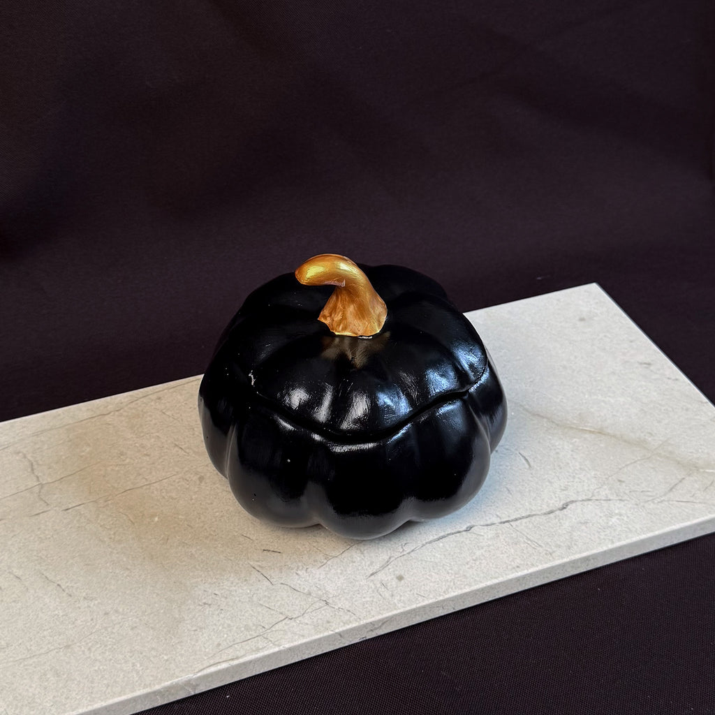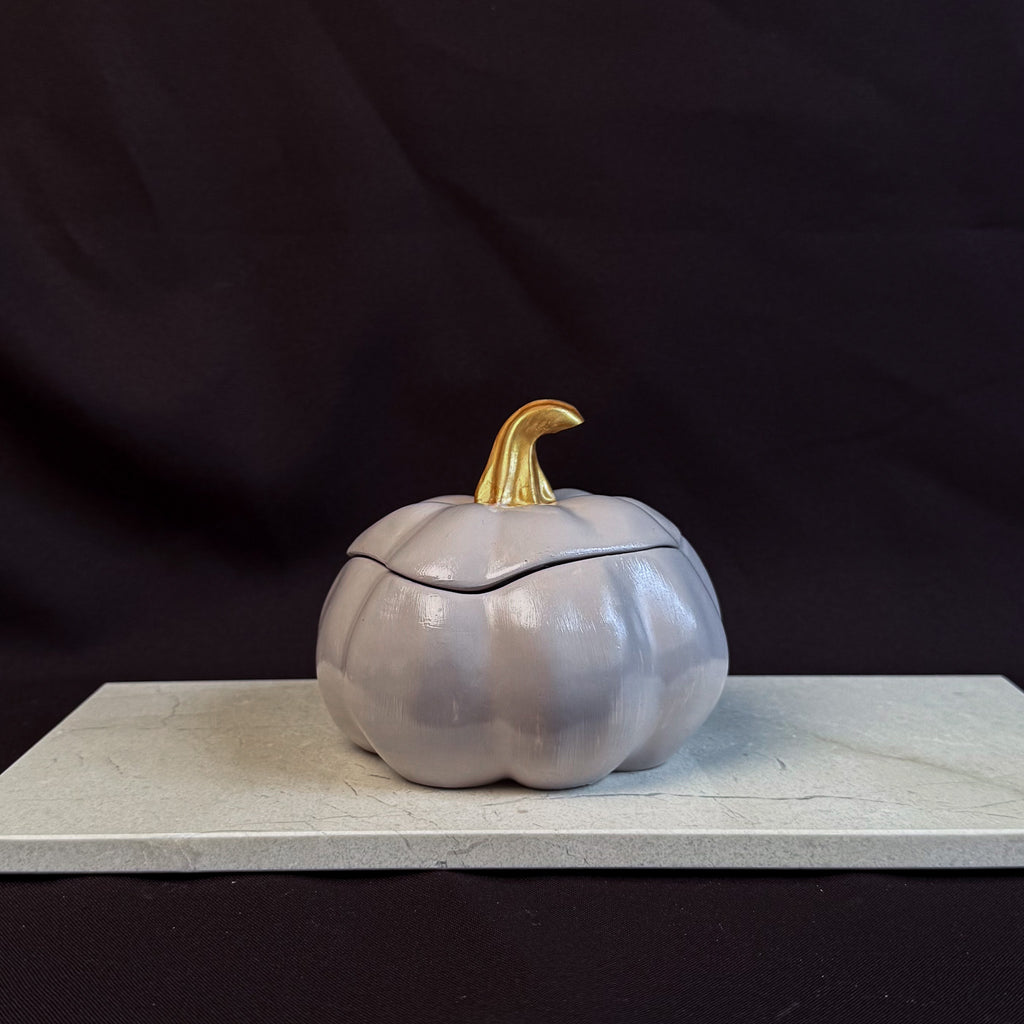 Gemaakt van hoogwaardig jasmoniet, doet de vorm denken aan een pompoen: delicaat gebogen, gedetailleerd en wonderbaarlijk charmant.