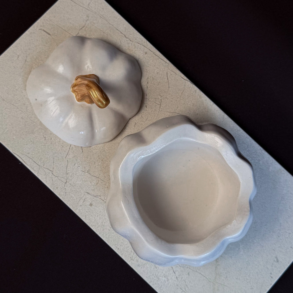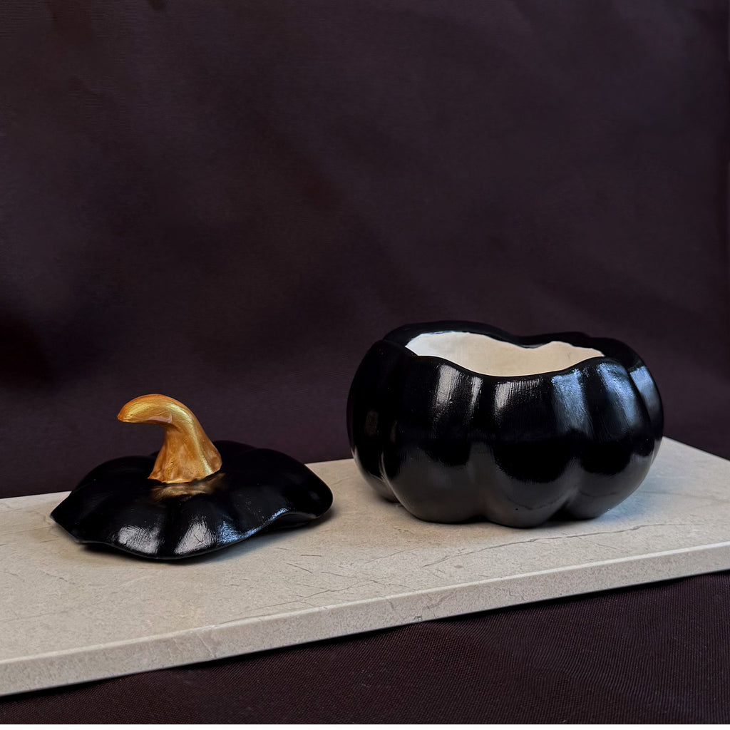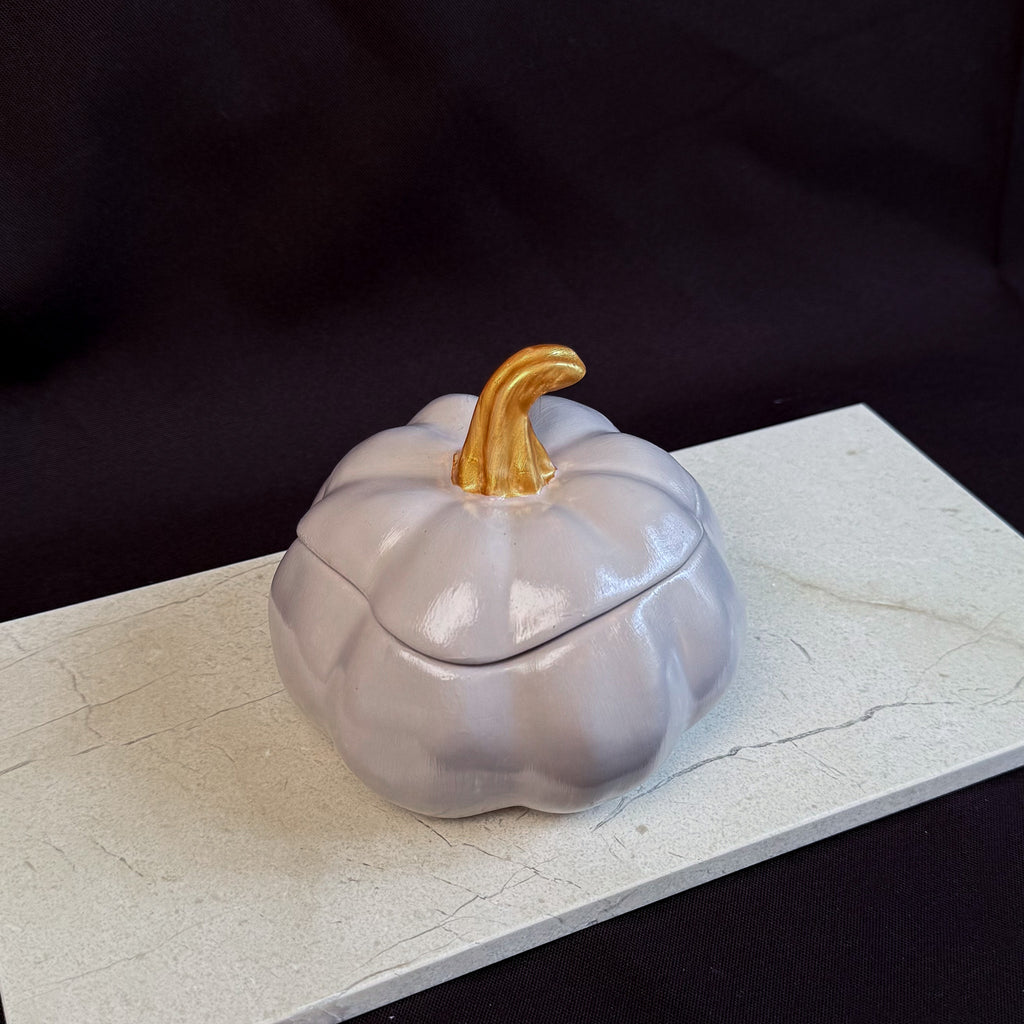 Gemaakt van hoogwaardig jasmoniet, doet de vorm denken aan een pompoen: delicaat gebogen, gedetailleerd en wonderbaarlijk charmant.