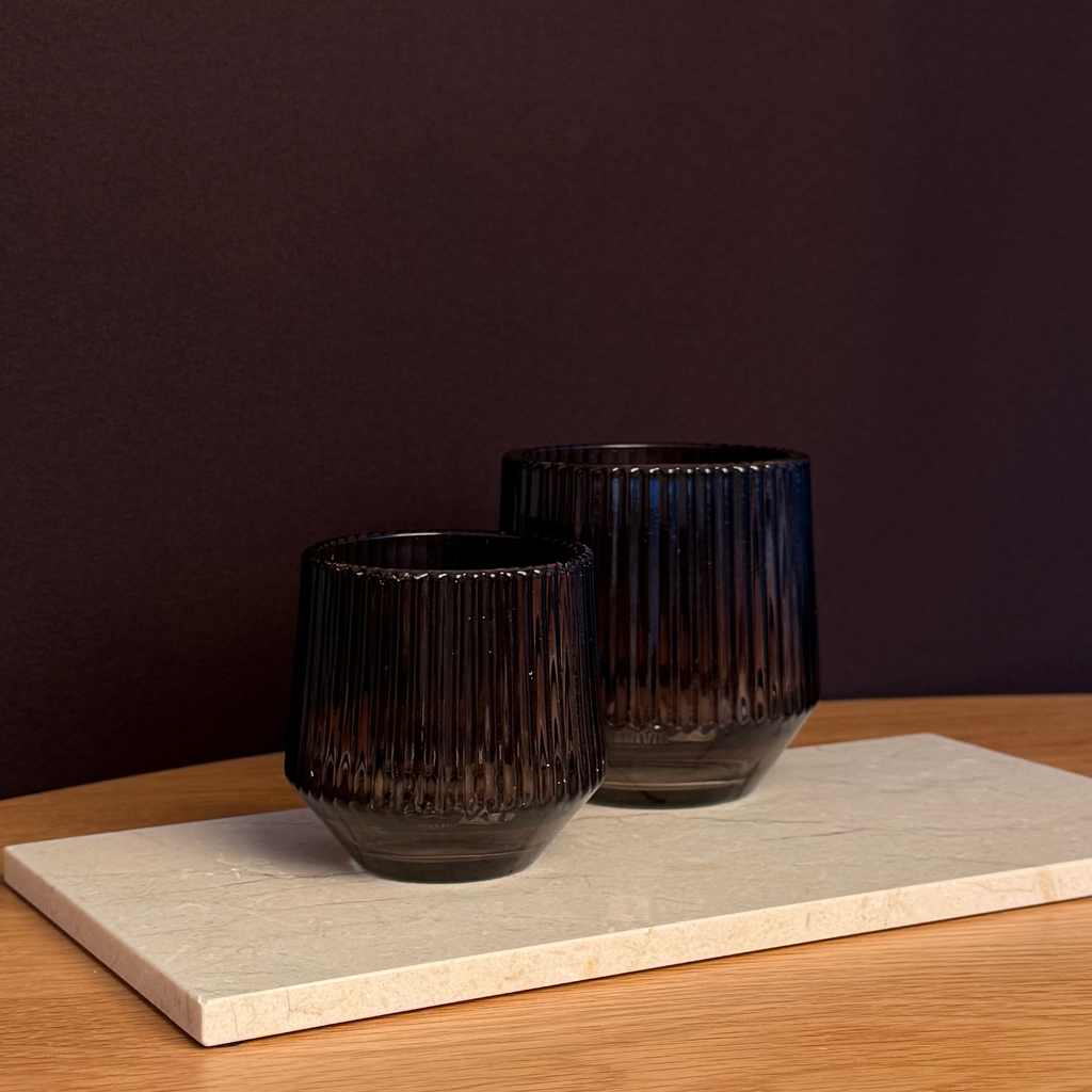 Verrijk uw interieur met deze unieke theelichtglaasjes, die imponeren met hun tijdloze elegantie en hoogwaardige kwaliteit. De groeven en de elegante antracietkleur geven uw kamer een bijzondere sfeer en maken van deze glaasjes een echte blikvanger. Of het nu gaat om een stijlvol accessoire of voor gezellige avonden thuis, deze theelichtglaasjes zijn veelzijdig en creëren een warme en luxueuze ambiance. Beleef de kunst van lichtdesign met Rita en laat u betoveren door haar hoogwaardige glas en unieke design.