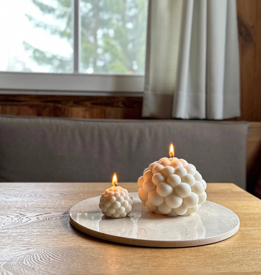 Ein Hauch spielerischer Kunst im Zuhause: BOBBEL, die skulpturale Kugel‑Kerze mit ihrer charakteristischen glatten Oberfläche aus gleichmäßig angeordneten Bubbles, bringt modernes Design und warme Akzente in jeden Raum. Perfekt für Frauen, die Stil, Qualität und Ästhetik auf höchstem Niveau schätzen.