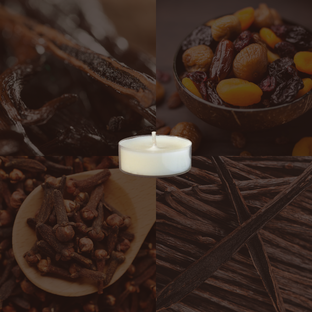 Kastanie, Walnuss, Weißer Ingwer, Nelke,Kaffee, Vanille, Zucker, Moschus