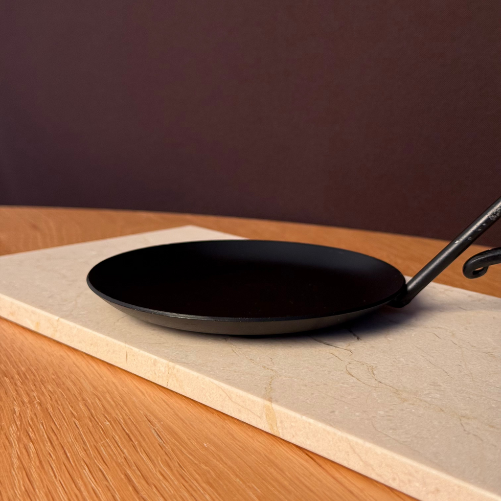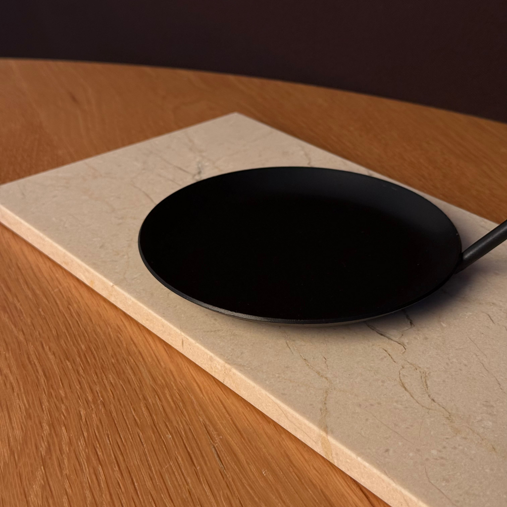 Diese vintage Kerzenuntersetzer gibt es in stilvollem Schwarz und Beige. Sie sind perfekt als Untersetzer für die Statement und Säulenkerzen von STUDIO MAVEA geeignet.